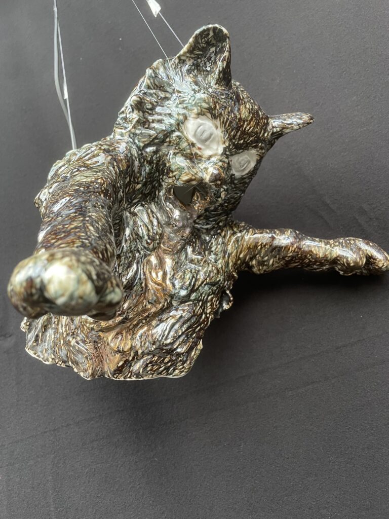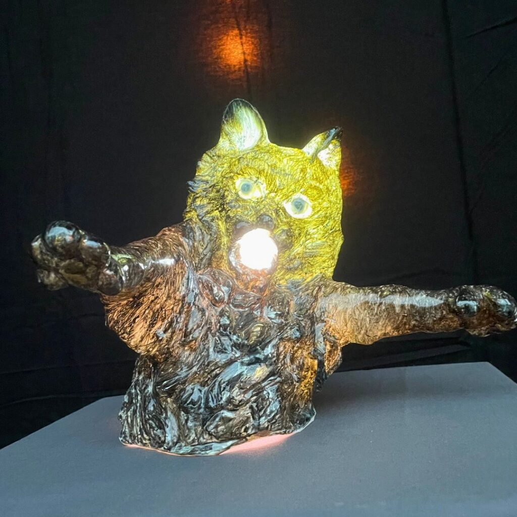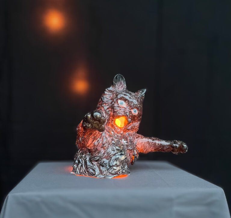The installation shows fascinating figures: glowing cats that embody chaos, mischief and the darker aspects of human nature. In literature and folklore, black cats represent misfortune or superstition, independence and mystery.